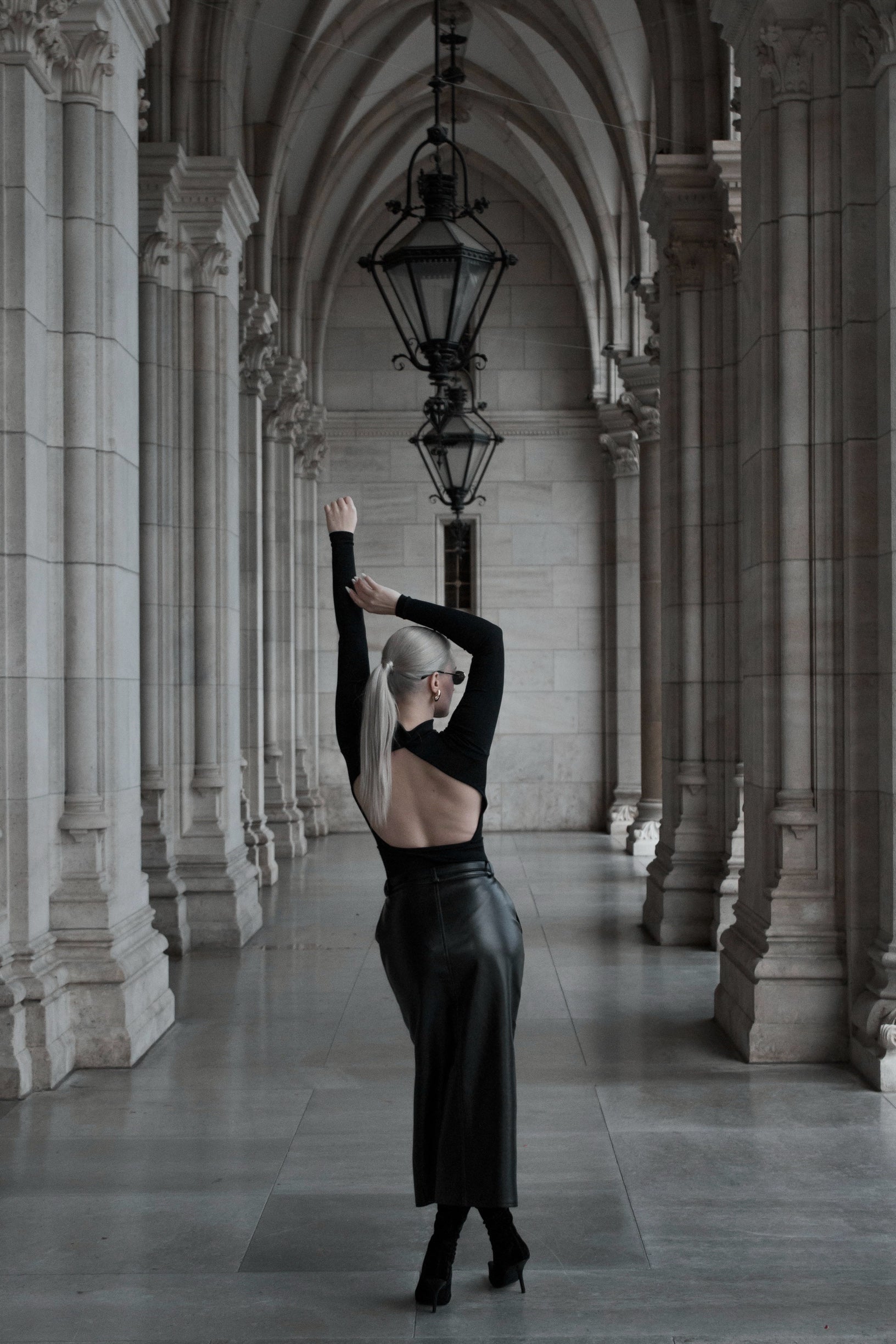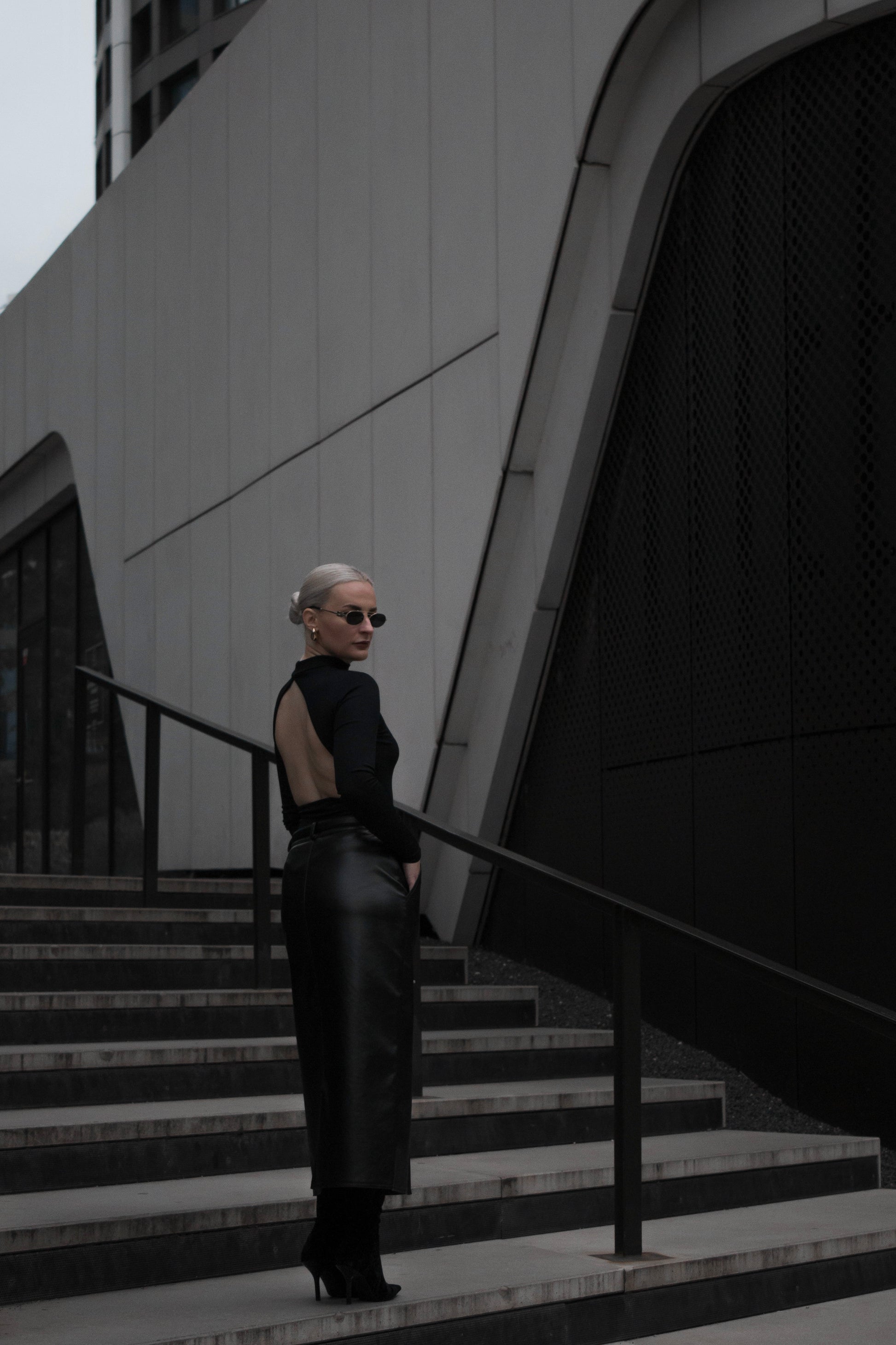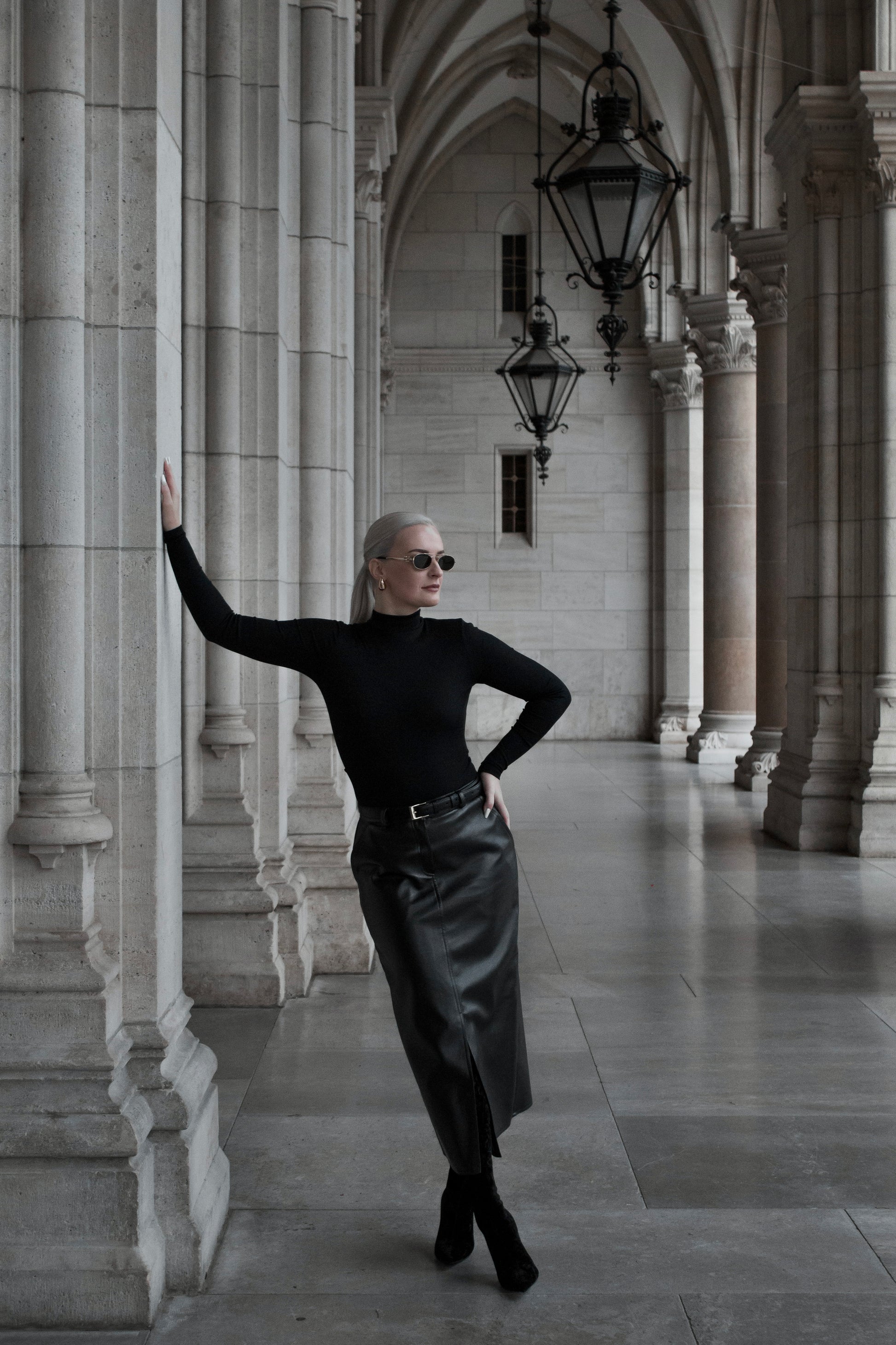 Sukňa z vegánskej kože s precíznym tvarovaním, ktoré zvýrazňuje postavu. Materiál má pevnú, hladkú štruktúru, vďaka ktorej si sukňa udržiava svoj tvar. Predný rázporok umožňuje voľný pohyb a pridáva funkčný detail k čistému, elegantnému vzhľadu. Sukňa sa prispôsobí telu, no nepôsobí obtiahnuto. Ideálna na sezónne vrstvenie s topom, sakom či dlhým kabátom.
